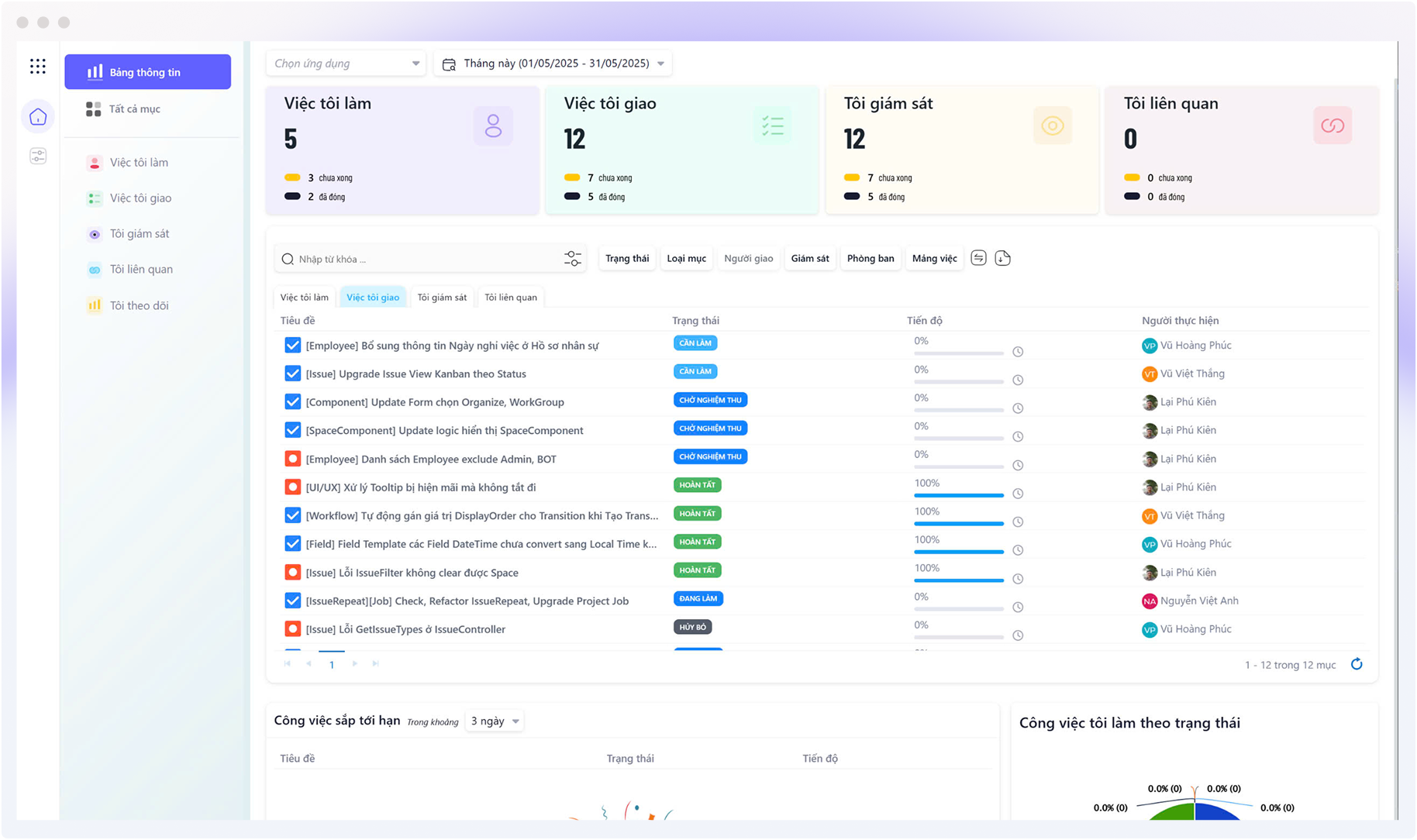 Lập kế hoạch, phân chia nhiệm vụ, nhắc nhở tự động và theo dõi tiến độ để đảm bảo công việc hoàn thành đúng hạn.
